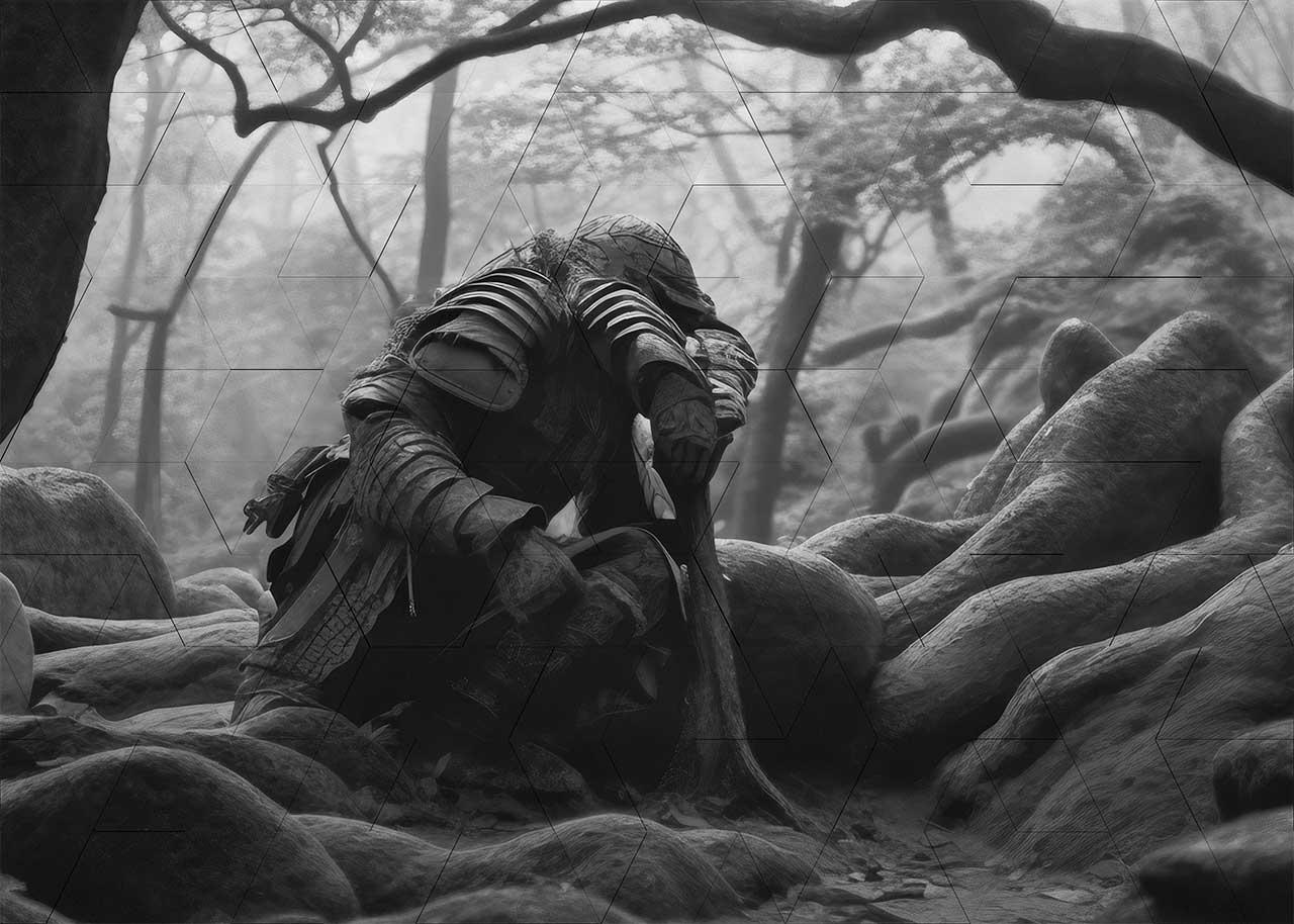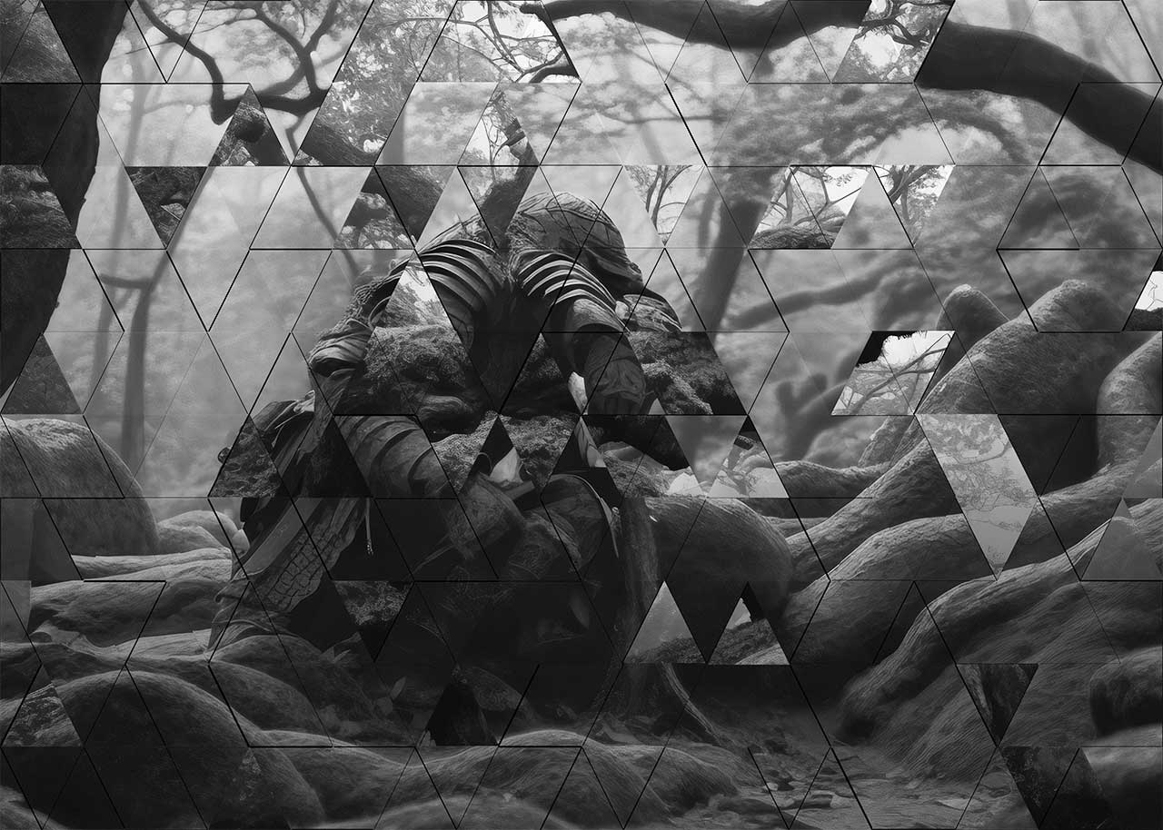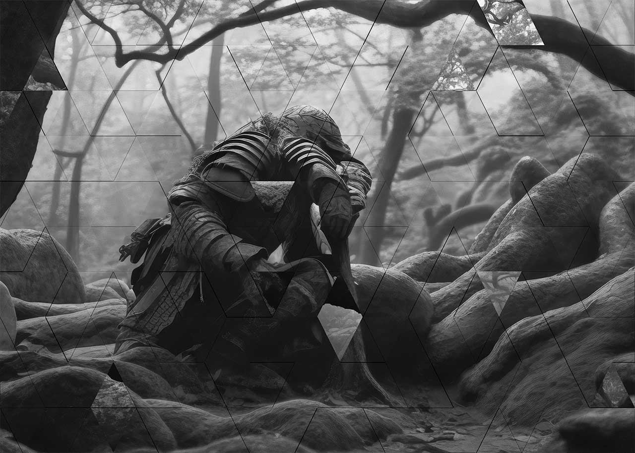 All images have been generated with text2image software using character testimony from Akira Kurosawa’s Rashomon as a source for the prompt text.
